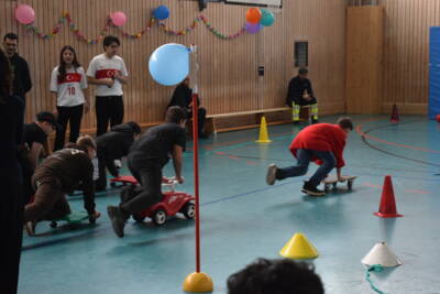 Dort warteten zahlreiche Spiele, bei denen die Klassen gegeneinander antreten konnten. Ob beim Bobbycar-Rennen, beim Klassenpuzzle, bei „Schnick, Schnack, Schnuck“ und vielen weiteren lustigen Aktionen – überall wurde gelacht, angefeuert und mitgefiebert. Die Stimmung war ausgelassen und fröhlich, und alle hatten sichtlich Spaß.