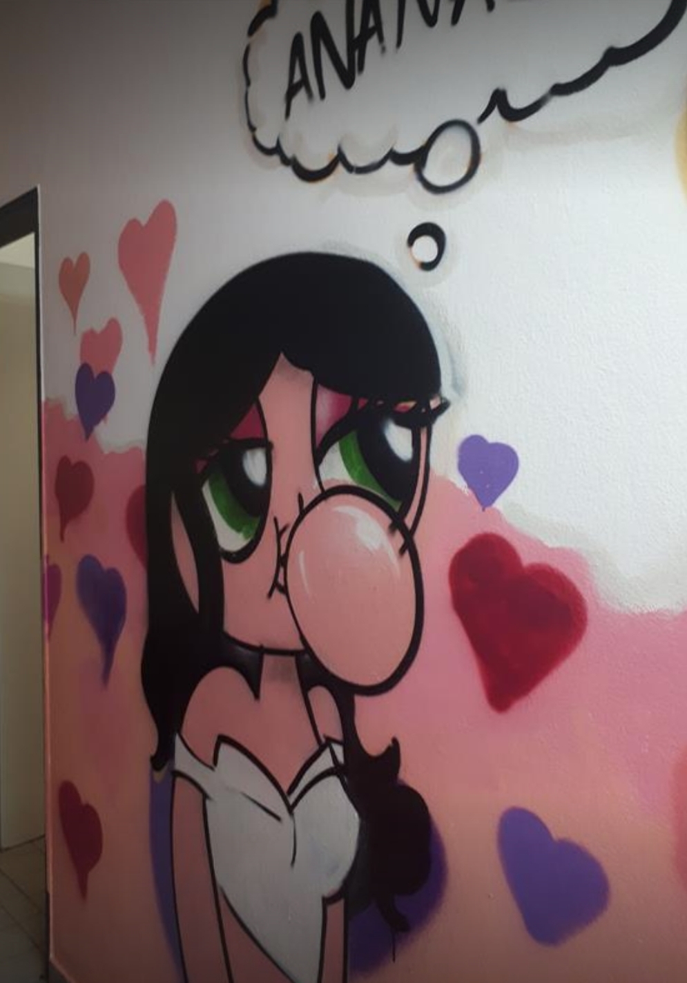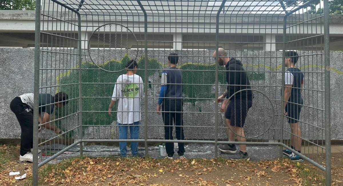 Vom 26.06.23 bis 10.07.2023 hat an drei Montagen der Graffiti-Workshop der JAS Mittelschule Taufkirchen in Kooperation mit "Den Bunten e.V. Augsburg" stattgefunden. Am ersten Tag des Workshops haben die Schüler*innen der 5a und der FTK sich gemeinsam mit den Anleitern Flo und Max ein Konzept zur Gestaltung der Toilettenräume im EG und der Rückwand des Fahrradunterstands überlegt. Die Toilettenräume der Mädchen stehen unter dem Motto „Tuschelecke“ und „verliebt sein“, bei den Jungs stehen Basketball, Boxen und Fußball im Vordergrund. Beide Räume wurden am zweiten Montag gestrichen, bemalt und besprüht. Am letzten Tag wurde ein großflächiges Kunstwerk auf einer Außenwand gestaltet. Es beschreibt die Lebenswelt der Jugendlichen, zwischen Hochhaussiedlung und Perlacher Forst, bis hin zu einem schönen Sandstrand am Meer als Sehnsuchtsort der Jungen und Mädchen.