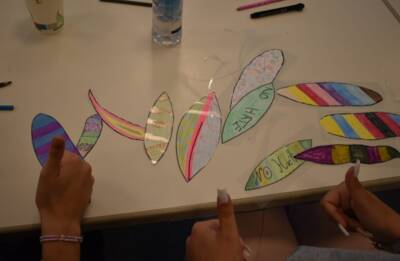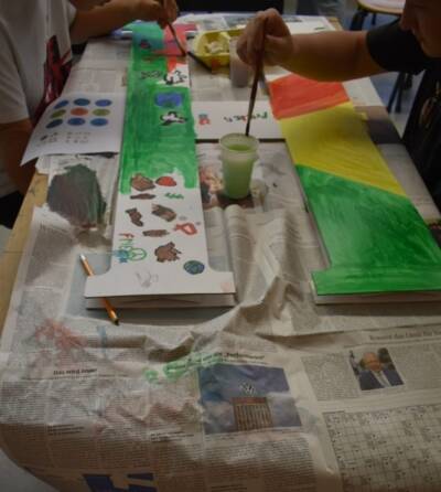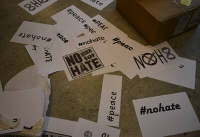 Doch die Projektwoche bietet nicht nur künstlerische Angebote. Auch im Bereich der Gemeinschaft und des sozialen Lernens werden tolle Projekte angeboten. Hier werden Gemeinschaftsplakate gestaltet, in denen wichtige Botschaften zum Thema "No Hate" festgehalten werden. Es wir gemeinsam gesungen und Buchstaben zum Motto werden kreativ gestaltet.